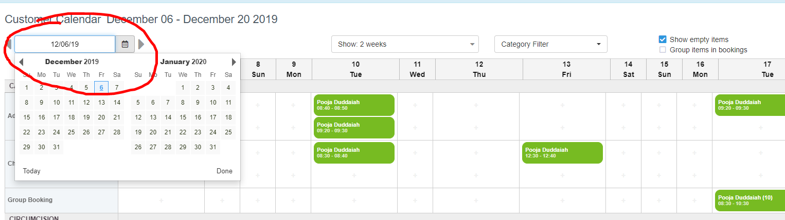 Step 1: Go to the calendar view and select the date you would like to book the appointment for. If it is not within the range shown already, you can jump to the date you want.