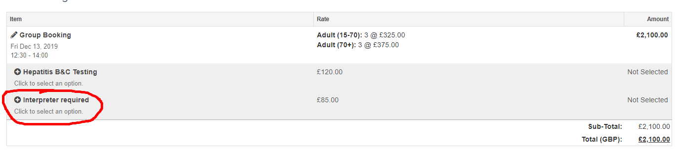 Step 5: In the case of an interpreter/additional services being required, select them on the next page