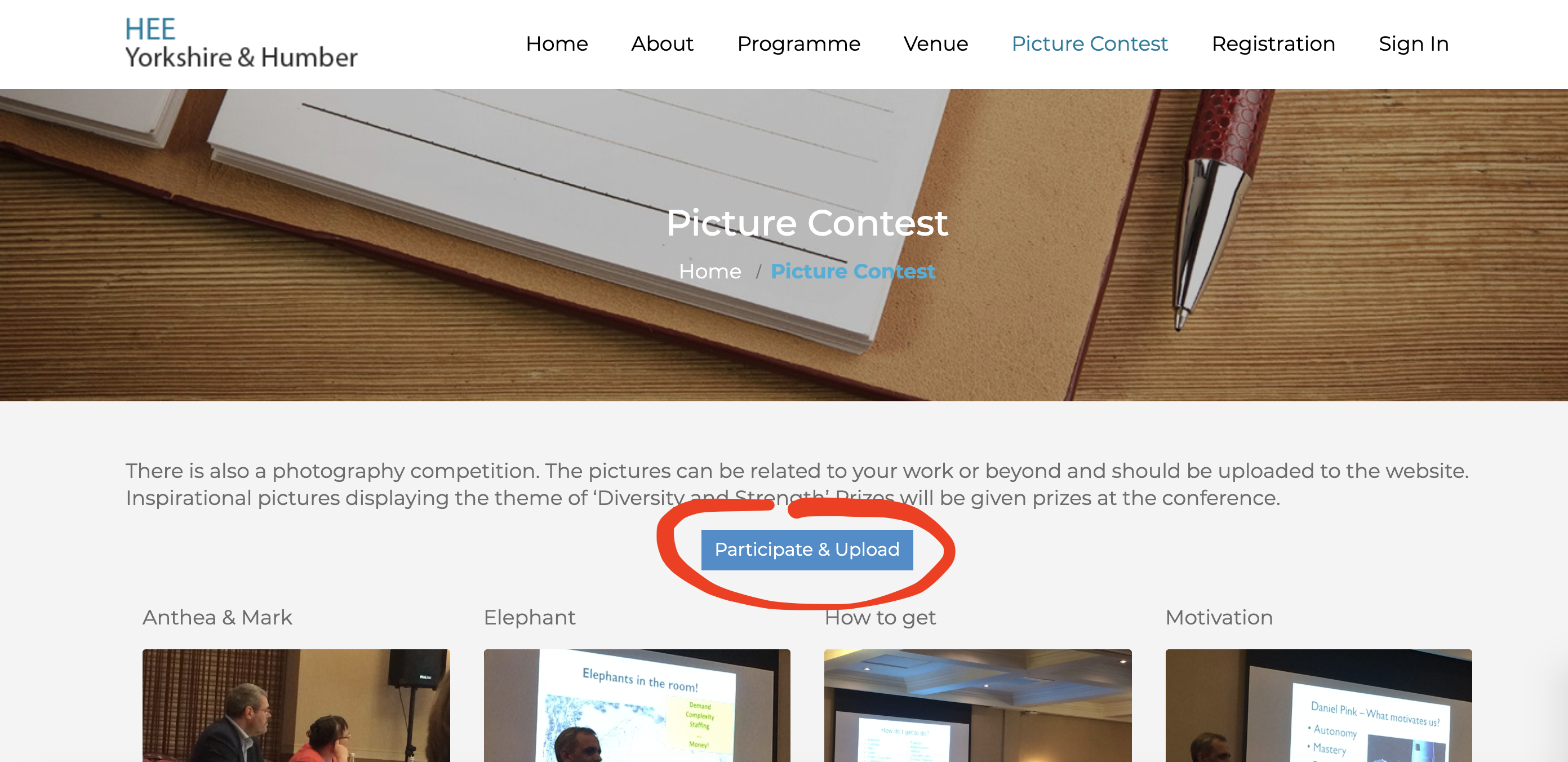 Step 2: Picture contest page will open and user will see "Participate and upload" button on the page
