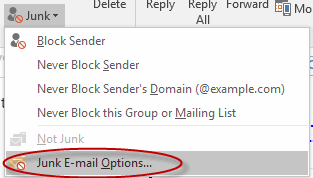 In the Junk E-mail Options dialog box, click Apply to save your changes.