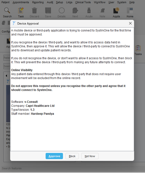 Step 8) Approve device registration request from SystmOne
