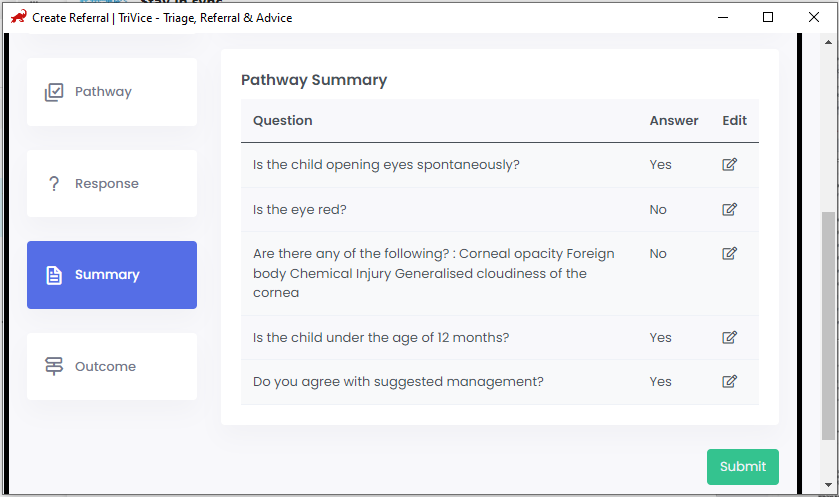 Click Submit to complete the submission to the receiving NHS provider (e.g., Birmingham Women's and Children's Hospital).