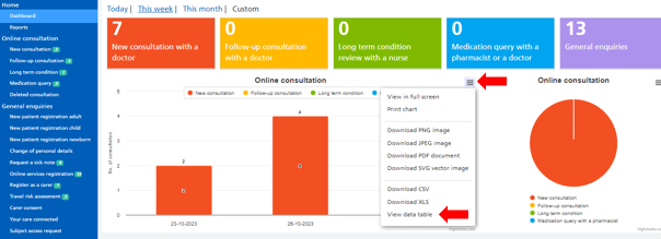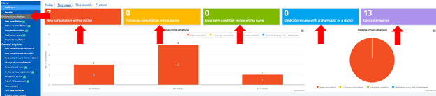 v-Consult is a tool for General Practices aimed at implementing a True Triage model in general practice using online consultations. The following functionalities are implemented on the dashboard.