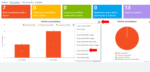 Step 1: Login to the dashboard. You can check all four consultations requests count on the pie and bar chart.