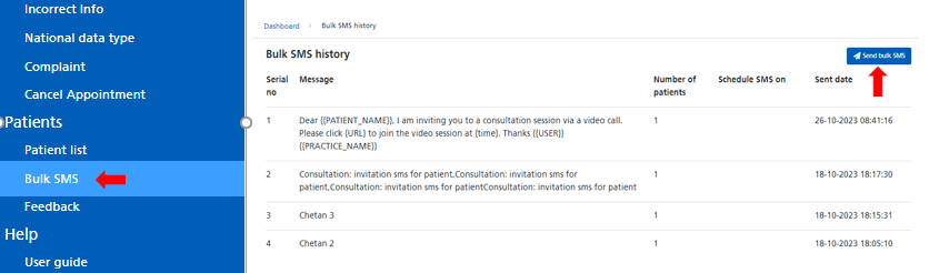 Step 3: Click on Send SMS to send the SMS to all the selected patients